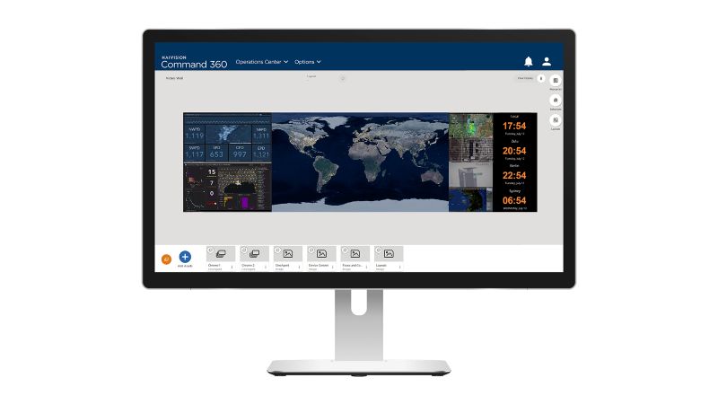 Haivision Command 360 is a complete videowall solution for situational awareness and real-time decision-making in mission-critical environments. It enables visualization from multiple sources with an intuitive drag-and-resize interface, supports a zero-trust security model, and keeps critical visual data accessible and actionable for agile, informed operational control.