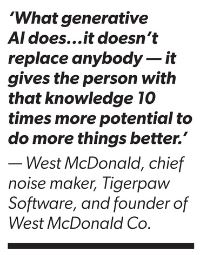 “AI” is a term that’s familiar to AV professionals. Think of Poly’s AI-powered cameras or Bose’s noise-canceling headphones. Generative AI is much different. According to West McDonald, chief noise maker, Tigerpaw Software, who is also founder of West McDonald Co., what AI doesn’t do is have a human touch. “In other words, you can’t ask a Bose speaker a question or get it to reset its parameters by talking to it,” he explains. “That’s one of the things that’s going to change. You’ll be able to have a conversation with whatever the system is, and that could be five or six components of things.”