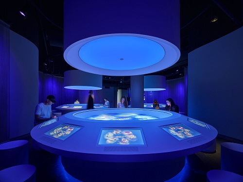 The company created an innovative technology solution that features 100-point touch table surfaces throughout the experience as well as special projection presentations, audio experiences and a virtualized control, system monitoring and user management platform as part of the overall system design and approach.