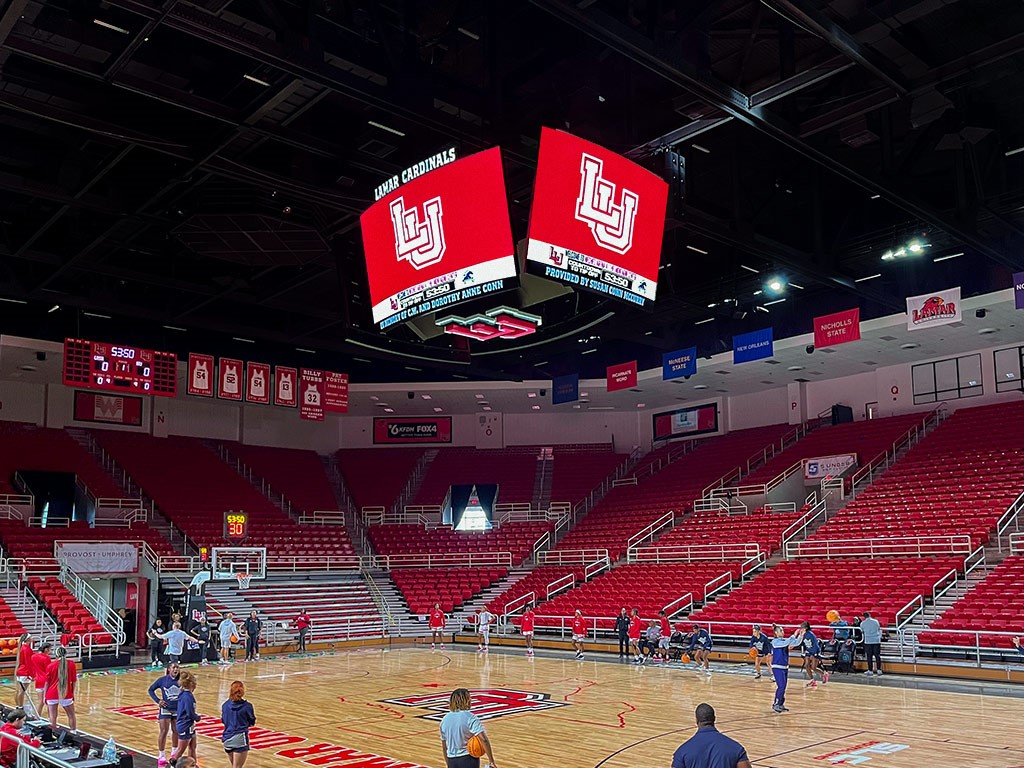 Lamar University, an NCAA Division I public college just east of Houston, completed major video enhancements to its football and basketball venues, adding a new video scoreboard at Provost Umphrey Stadium and a new LED centerhung to the Neches Federal Credit Union Arena at the Montagne Center.